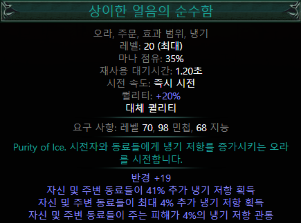 대체퀄리티 젬이 나오면서 순수함 오라로 원소 저항 관통을 확보함