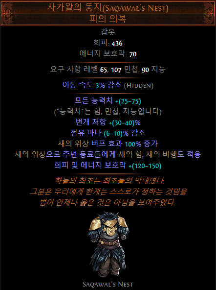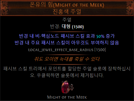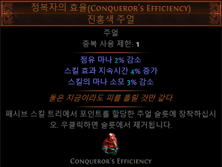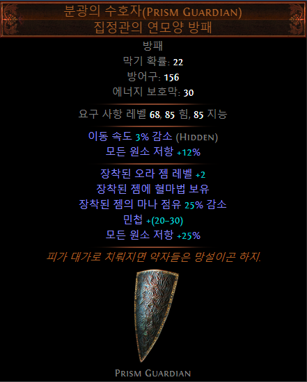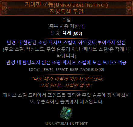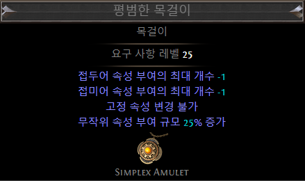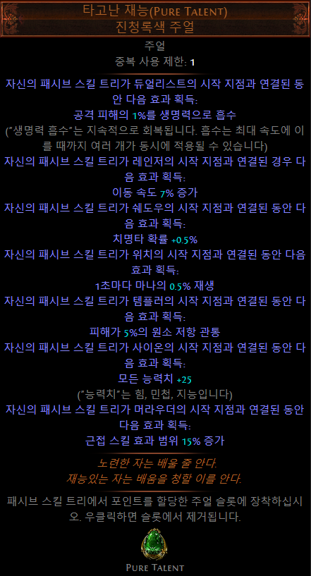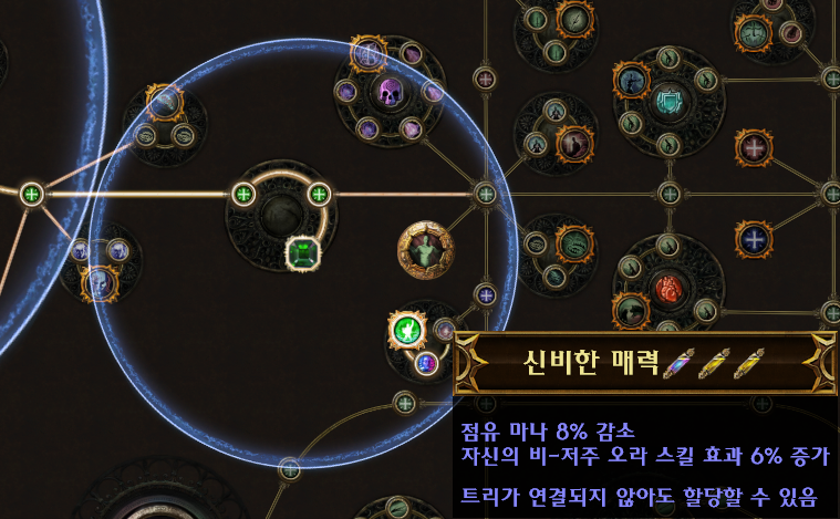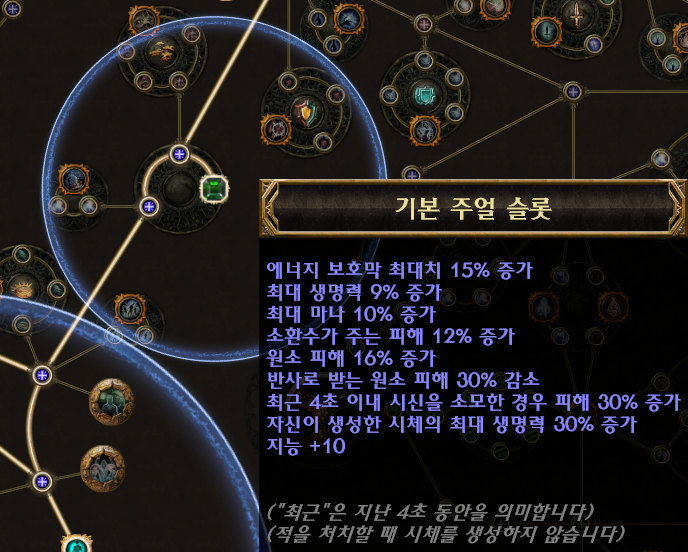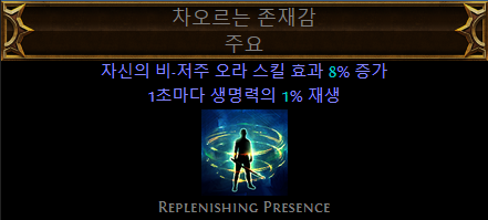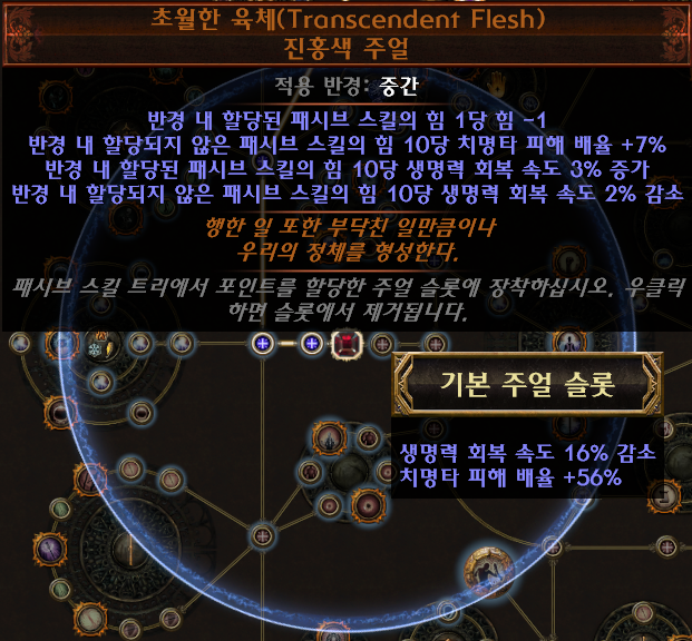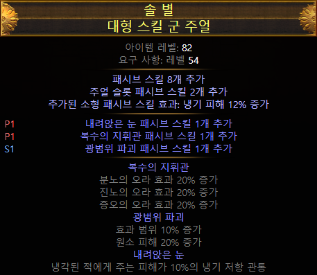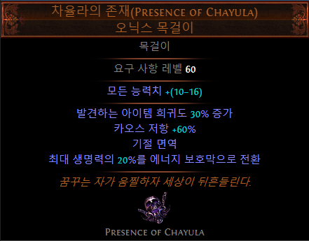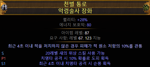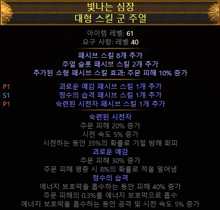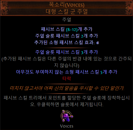 - (접미)추가되는 소형 패시브 스킬이 카오스 저항 4% 부여 (LL 빌드에서 선택)