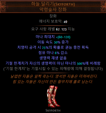 - 바알 정의의 화염(CI, LL빌드 보스전 사용) - 이동기