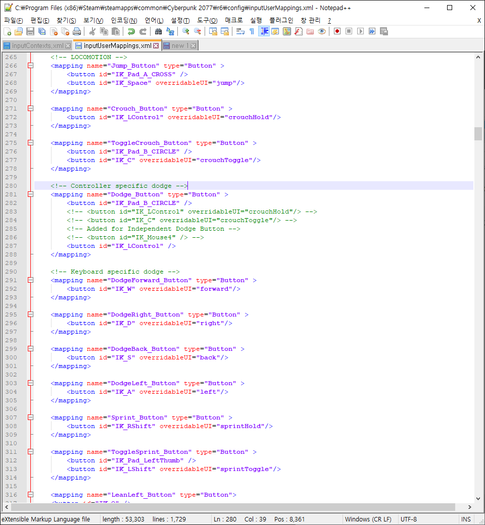 inputContexts.xml 파일을 메모장으로 수정