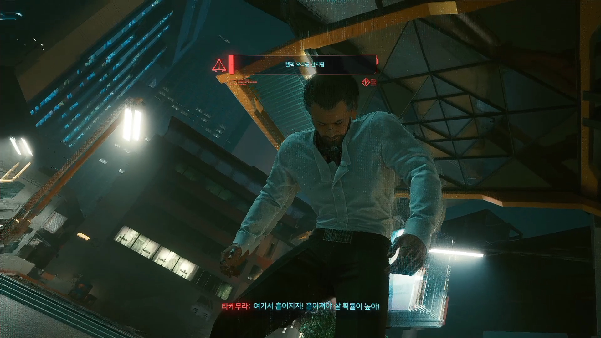 이때 조니가 조언을 해주는데 V는 타케무라를 구해야 된다고 함